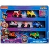 Le coffret comprend sept figurines des chiots de la Pat’ Patrouille : Chase, Marcus, Ruben, Stella, Zuma, Rocky et Liberty, chacun avec leur véhicule respectif.