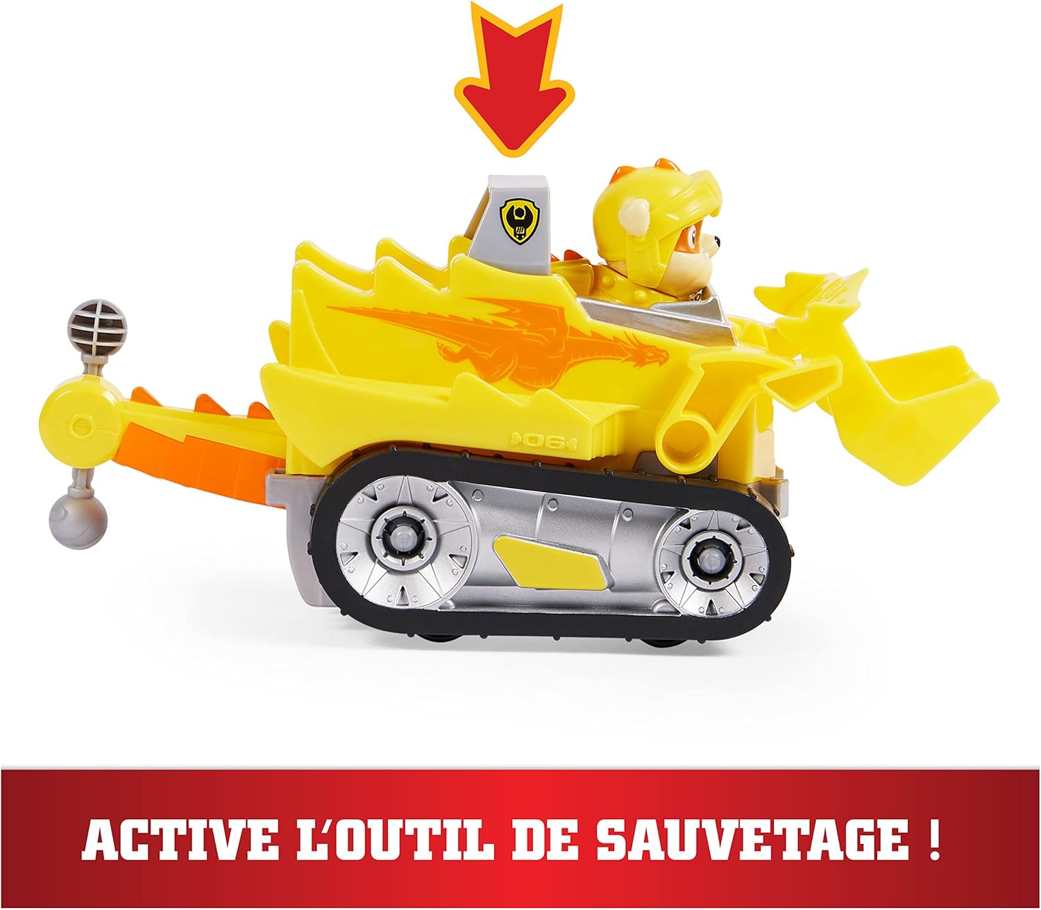 VÉHICULE PAT’ PATROUILLE DE SECOURS 15 CM – Avec des motifs et des détails authentiques sur le thème des dragons, le véhicule Pat’ Patrouille de Ruben est prêt à se lancer dans des missions de sauvetage palpitantes. Appuyez sur le badge de la Pat’Patrouille pour activer son outil de sauvetage articulé et utilisez-le pour éliminer les obstacles