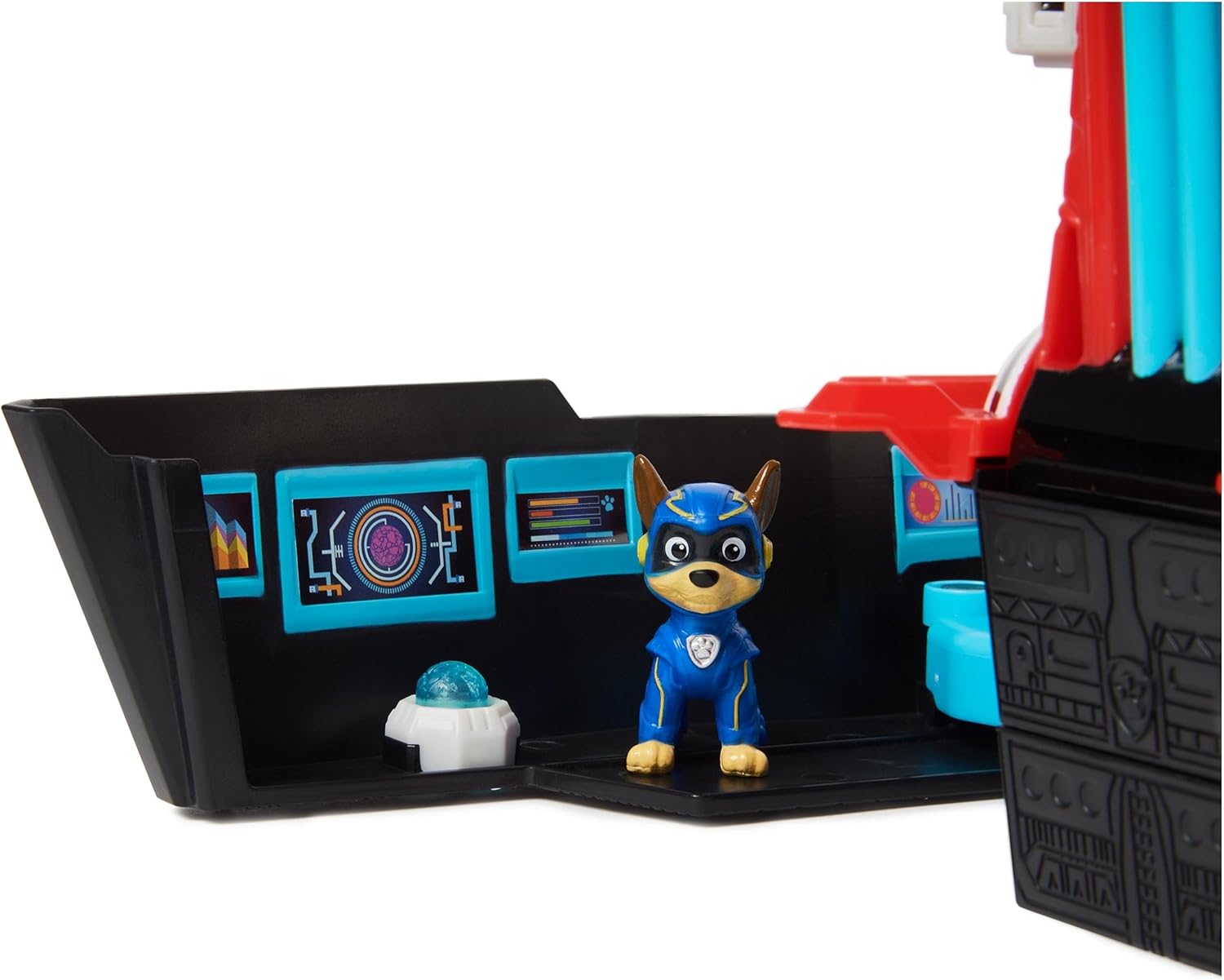 TRANSFORMATION DE VÉHICULE – Soulevez le toit du QG et placez-y Stella pour remonter la salle de contrôle et la rampe de lancement, puis poussez la languette rouge pour envoyer la voiture de Stella à toute vitesse au cœur de l’action