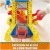 R : Le set comprend une grue interactive, une figurine articulée de Ruben, un véhicule bulldozer, du sable Kinetic Sand et divers outils de construction.