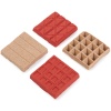 Le système de moulage intégré à la tour de la grue permet de charger deux moules réversibles avec un mélange de sable rouge ou marron. En abaissant le grand levier rouge, les enfants peuvent faire descendre l’impacteur et créer leurs propres blocs de construction. Une fois ces blocs formés, ils peuvent être déposés sur la plate-forme de base, prêts à être utilisés dans de nouvelles constructions imaginaires.