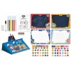 CONTENU : Ce produit contient 4 tableaux noirs, un pupitre à assembler, un livret de coloriage, 6 Feutres de couleur, des craies de couleur et des autocollants.