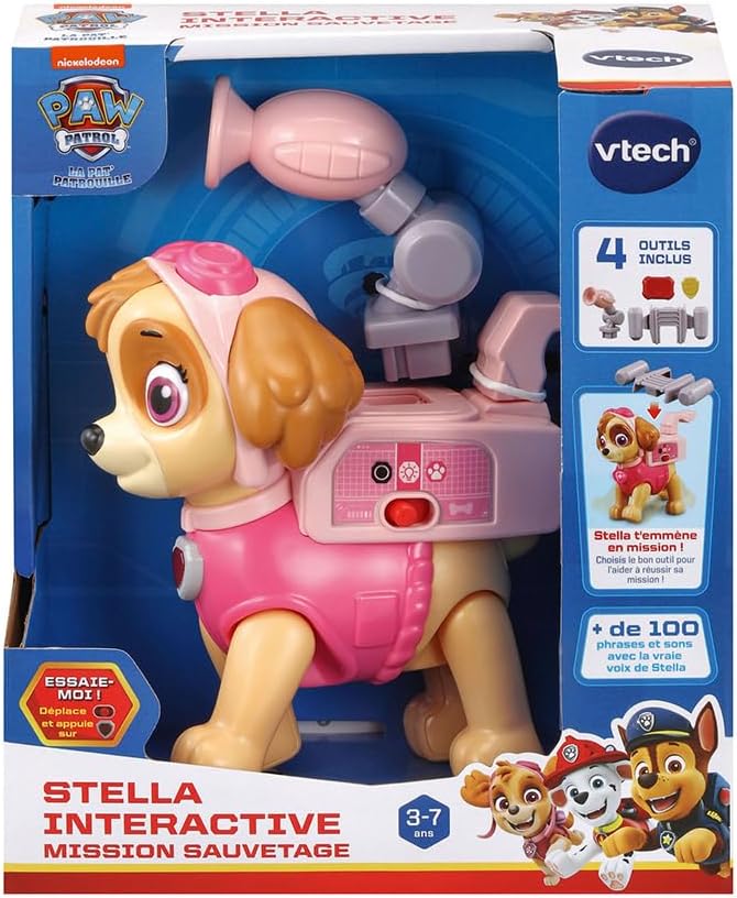 En résumé, la figurine interactive Stella de la Pat Patrouille avec 4 accessoires VTech est un jouet divertissant et éducatif qui plaira aux fans de la série. Avec ses fonctionnalités interactives, ses accessoires amovibles et son capteur de mouvement, elle offre une expérience de jeu immersive et stimulante pour les enfants.