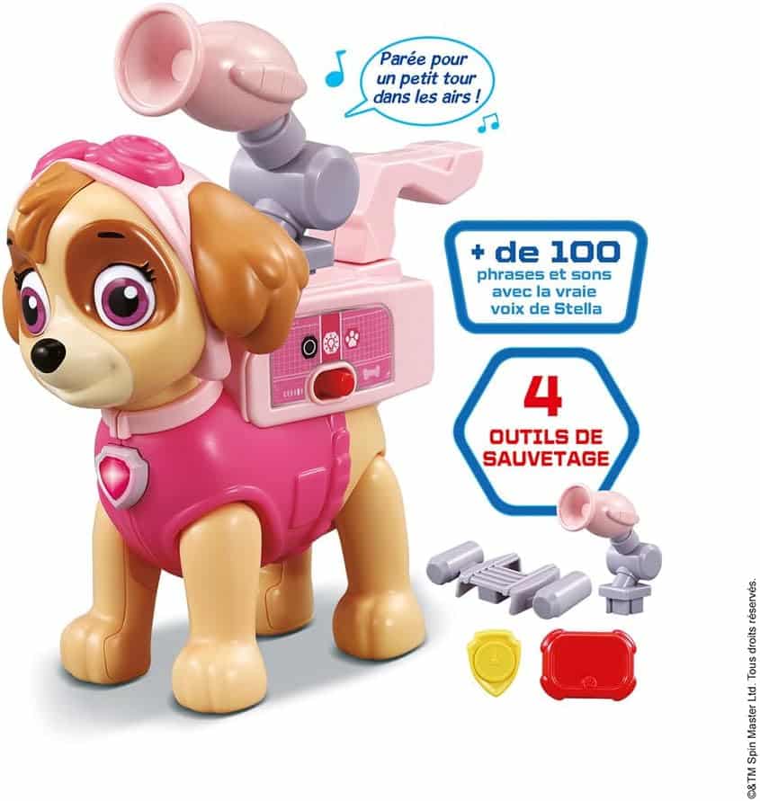 LA VERSION FRANÇAISE de ce jouet interactif Stella permet aux enfants dès 3 ans de s’inventer d’incroyables aventures en compagnie de leur héroïne préférée de la Pat’ Patrouille.