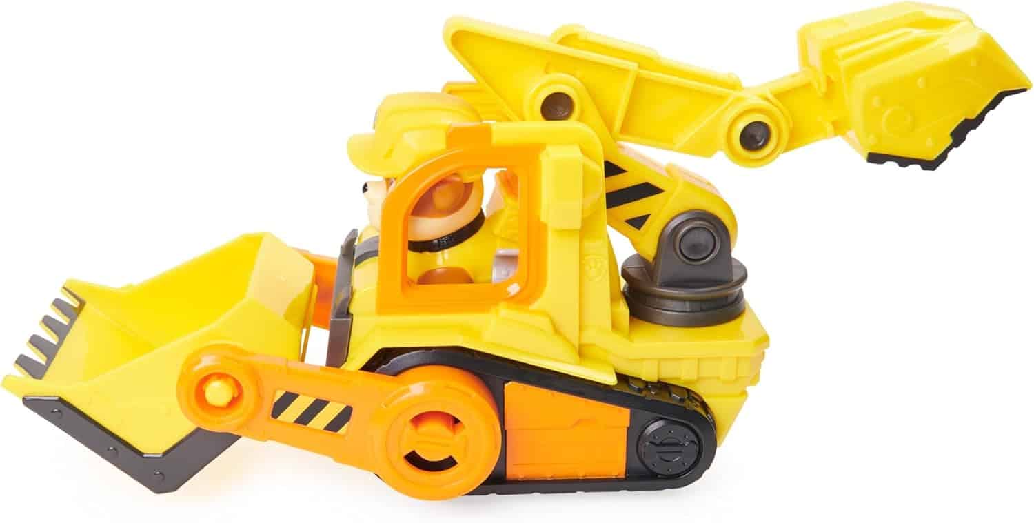 This is a brilliant little toy, for fans of paw patrol, especially rubble or construction play.Articulated crane and grabber with a small figure of « charger ». A lot of fun and goes well with the rest of the paw patrol collection of vehicles